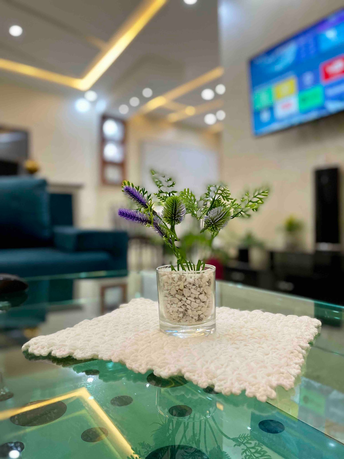 OBS: Det finns några husbyggnader i närheten av lägenheten som kan orsaka lite buller under arbetstid, men på natten kommer du fortfarande att njuta av en lugn och mysig vistelse i vår charmiga lägenhet, belägen i ett lugnt område med vacker utsikt. Åtta minuter från Corniche Sabadia och 10 minuter från stadens centrum med transport. Ingen bil? Inga problem – taxibilar finns bara 4 minuters promenad bort. Slappna av, varva ner och skapa oförglömliga minnen i Al Hoceima.
