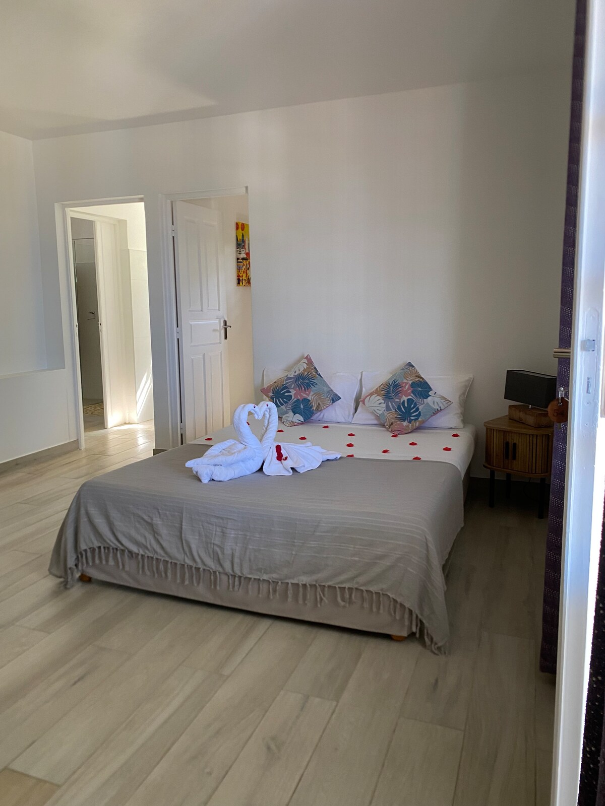 Fly till vårt nya Love and Spa-område – oavsett om det är en wellness-resa på egen hand, en romantisk helgutflykt eller avkoppling med vänner … kom och koppla av i detta eleganta boende i en lugnande atmosfär med ett privat spa. Njut av lugnet och skönheten i den omgivande naturen, Stränderna i Petit-Havre, Anse à Jacques, Les Salines och Saint-Félix ligger inom gångavstånd (25 minuter) vid kuststigen. Närhet till butiker, olika fritidsaktiviteter och transport.