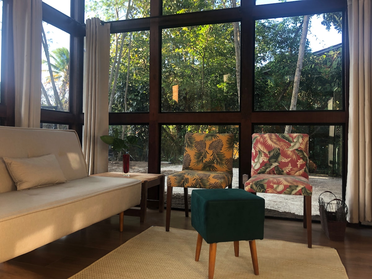 Relaxe com sua família no Chalé Paraíso, um refúgio tranquilo em Corumbau cercado pela natureza. O espaço possui quintal amplo com árvores frutíferas como coco e araçá, perfeito para crianças brincarem e para momentos especiais em família. A área externa tem uma linda vista para o verde, ideal para descansar e aproveitar a paz do lugar. Próximo a mercados, padaria e outros comércios locais. Wi-Fi, brinquedos infantis, toalhas e lençóis disponíveis para sua comodidade. 🌴