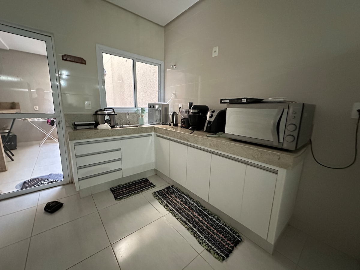 Här hittar du konst, natur och vilostunder av hög kvalitet. Varje litet hörn har lite historia, vilket gör din vistelse mysigare och bekvämare. Perfekt för två personer, ett sovrum med dubbelsäng, socialt badrum, vardagsrum, kök, tvättstuga och 01 parkeringsplats. Bra ställe!! 5 min UniRV - 3,5 km 4 min do Buriti Shopping – 2,5 km 5 min motorväg – 2,2 km 2 min stormarknad och bensinstation – 1,1 km