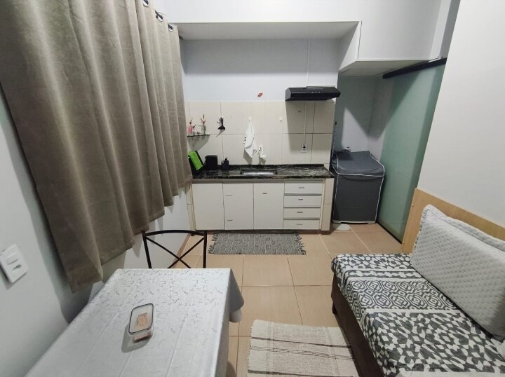 kITNET contendo sala integrada, cozinha equipada, suite, ar condicionado, ventilador de teto,TV e máquina de lavar. PRÓXIMO: Farmácia 55m, panificadora 50m, mercado 150m, bebida gelada 150m, praça p diversão 120m, Faculdade UNIRV 1,5km, Centro 4 minutos. *AMBIENTE FAMILIAR.