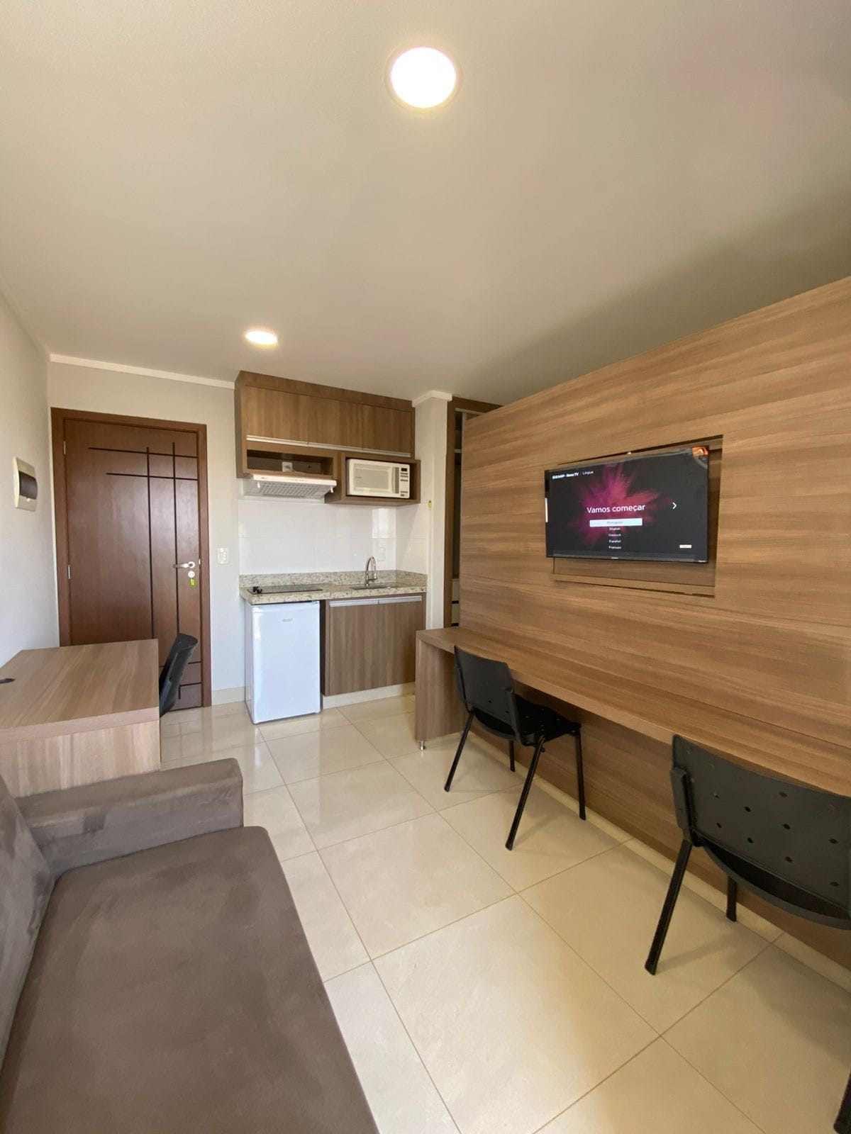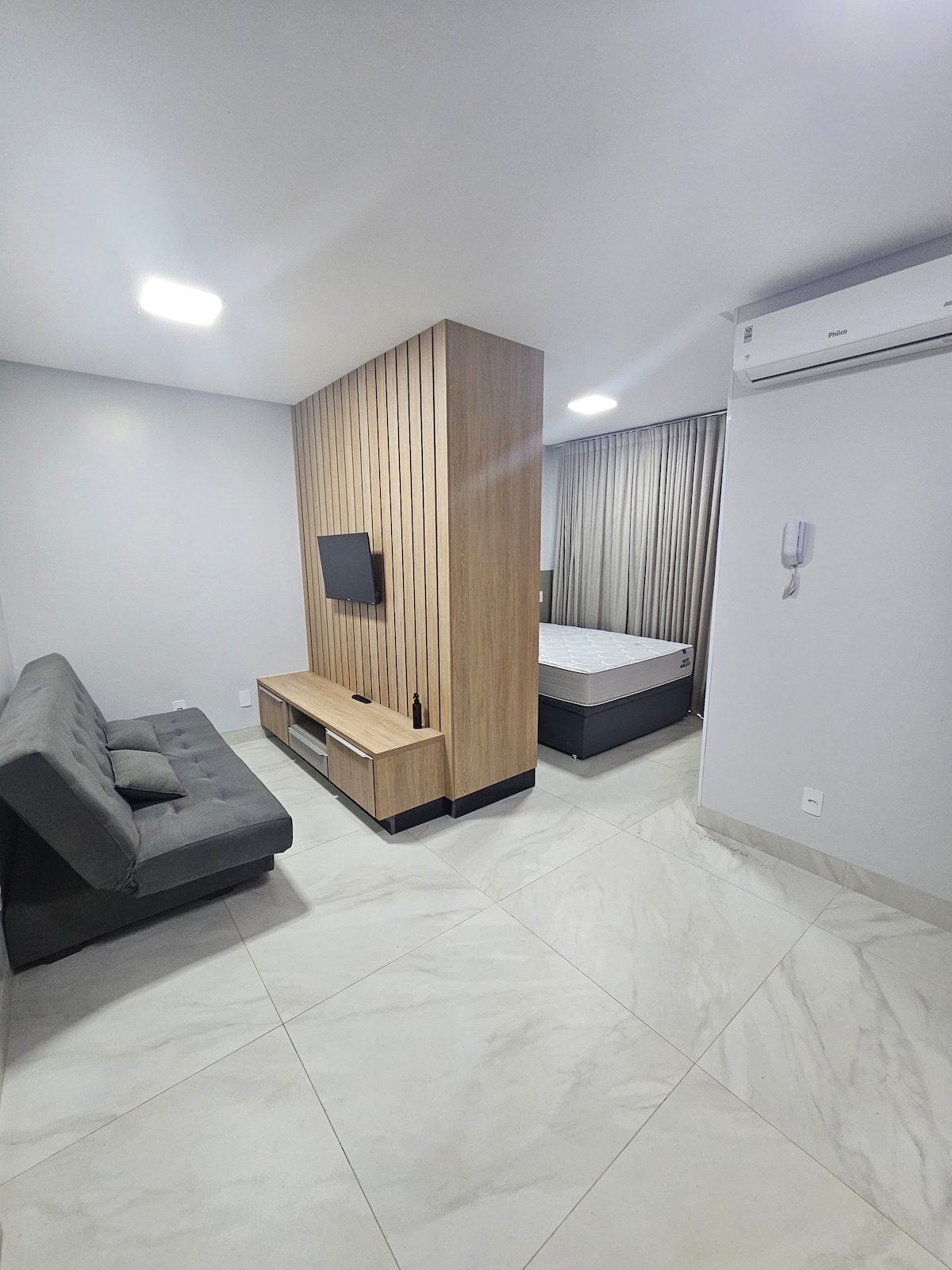 Bo i en helt privat, nybyggd studiolägenhet med alla nödvändiga redskap för en bekväm vistelse, inklusive helt nya, premiumkvalitativa köksartiklar. Byggnad med 24-timmars concierge, gym, spelrum, festrum och närbutik i byggnaden. Balkong med en spektakulär utsikt. Privilegierat läge, nära UNIRV, med en kyrka, stormarknad, torg, restauranger och olika anläggningar i närheten. Lugn och lugn gata.