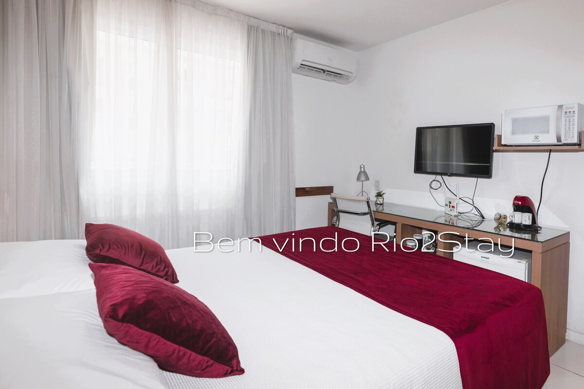 Detta unika ställe har en 4-stjärnig Apart Hotel-stil, alla mycket nya och väl underhållna. Full sviter, wifi, kabel-TV, gratis parkering, incheckning dygnet runt, möjlighet till 2 enkelsängar eller 1 dubbelsäng, minibar, skåp och kassaskåp. Rio Stay har en tvättstuga och vi äter frukost på Verdana Restaurant som serveras varje dag (gästen köper direkt från restaurangen). Vi ligger 50 meter från Rio Centro. Och mycket nära följande: Projac, Olympic Park, Rock In Rio.