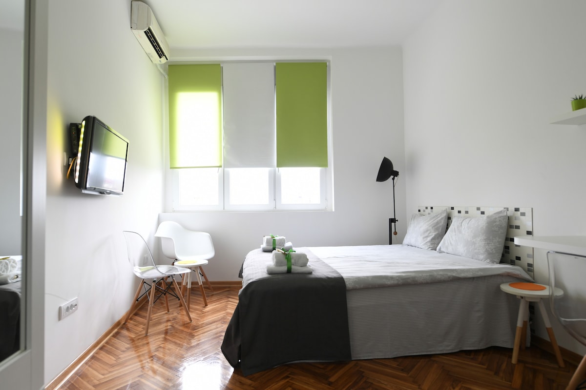 Inredd, original, öppen planlösning 60 m2 lägenhet i en av de bästa gatorna, Krunska. Lägenheten ligger på en upphöjd bottenvåning, med egen parkeringsplats, plus alla moderna faciliteter för att ha en lyxig vistelse. Helt nytt. Gjord för gäster som uppskattar bra boende. All sightseeing ligger i närheten, museum Nikola Tesla ligger på samma gata. Det finns en utländsk ambassad tvärs över vägen, med 24 timmars säkerhet. Du hittar inte ett bättre ställe. Tvättmaskin/torktumlare. Snabbt Wi Fi. Ha så kul!