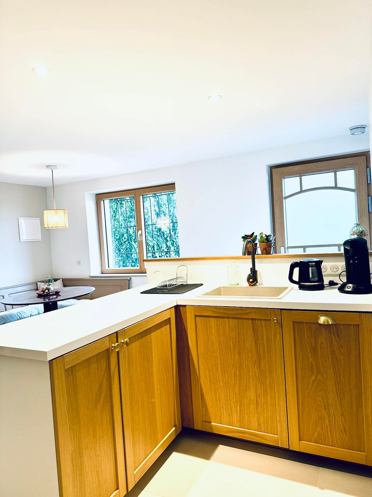 Helt renoverad lägenhet i fristående hus i Kaysersberg röstades till den vackraste byn i Frankrike. Fullt utrustat kök (nespressomaskin) Vardagsrum med hörnlädersoffa med meridian, 1 sovrum (säng: bredd 160). Rymligt badrum med duschkabin och toa. Mycket tyst. Privat ingång, Gratis parkering framför huset. Utomhusutrymme med trädgårdsmöbler och grill, inhägnad. Lakan , handdukar, papper, tvål och duschtvål tillhandahålls.
