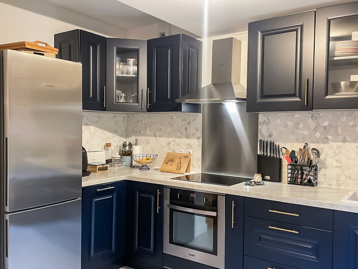 Mysig vistelse nära Paris: 3-rums öppet kök och bar