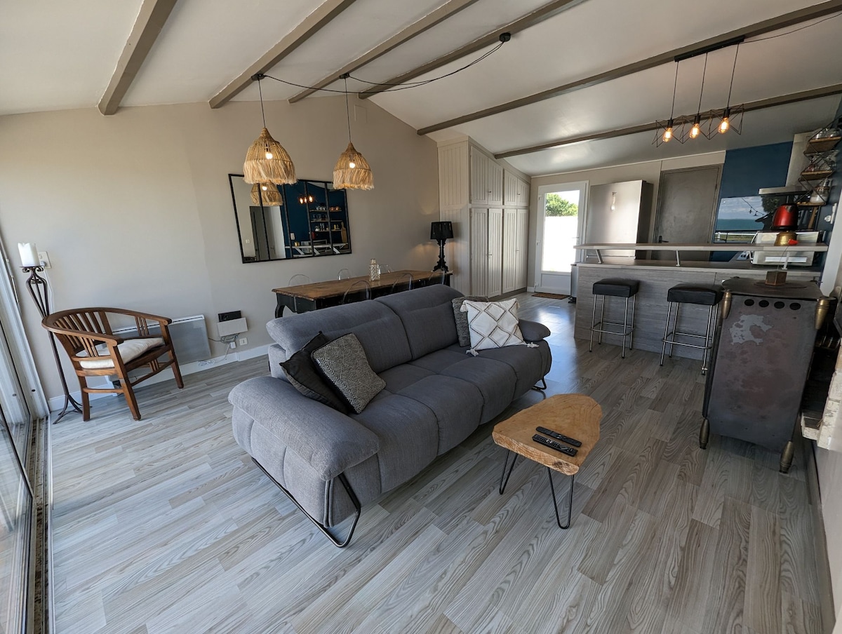 Villas Véronique, en bit av paradiset på Ile de Ré. En unik plats för ett nytt sätt att uppleva lyx. Vacker villa med privat uppvärmd pool med hav 50 m bort. Vardagsrummet är öppet mot utsidan. Ett sovrum med en dubbelsäng och högkvalitativa sängkläder ansluter till vardagsrummet genom en stor snidad rosenträdörr. Det andra sovrummet har en enkelsäng. Badrummet har en duschkabin i natursten.