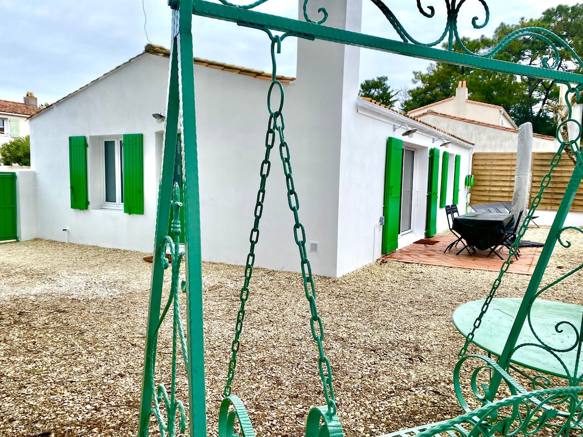 I ett lugnt område, 250 m från de vackraste stränderna i Ile de Ré (5 minuters promenad), 100 m2 fristående hus med uppvärmd pool (8 m x 3 m) från april till oktober (om utomhustemperaturen tillåter det) helt renoverat, mycket ljust, fullt av charm, volym och vackra material, i slutet av en återvändsgränd och inte förbises. 600 m2 trädgård. 15 minuters promenad till Couarde Market och 5 min med cykel.