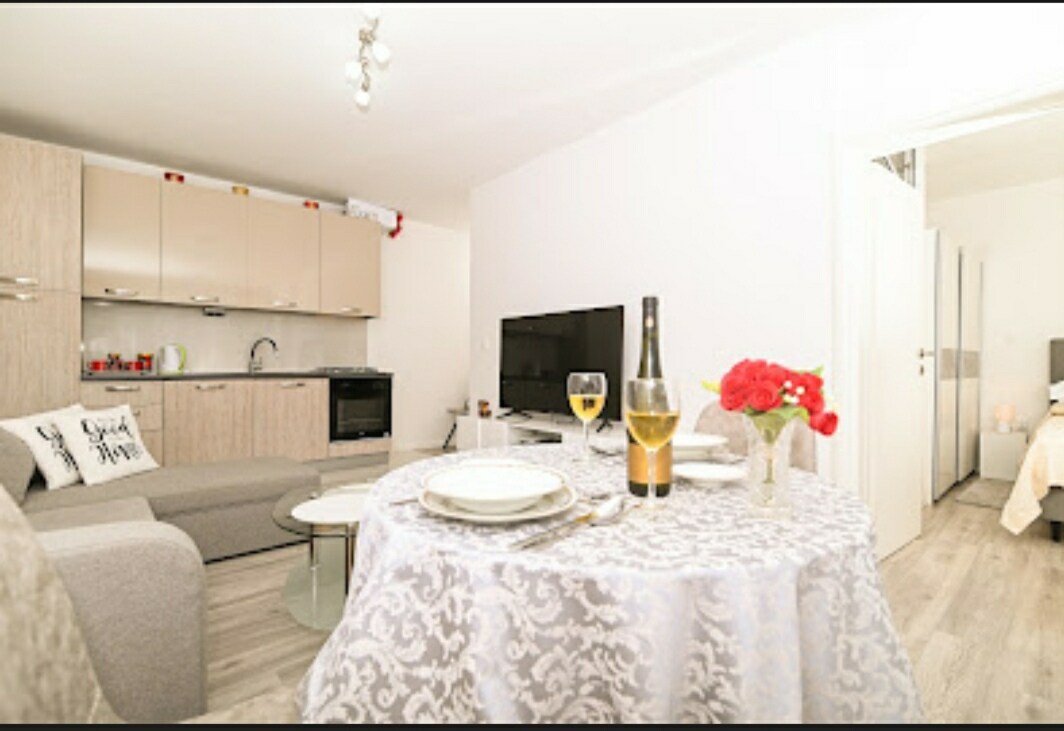 Ny modern studiolägenhet ligger i centrum av Split i ett inhemskt hus på sista våningen. Beläget 5 minuter från Nationaltheatern och Diocletianpalatset. Välkommen till Split Kära gäster, Vi kommer att göra vårt bästa för att vara bra värdar och att våra gäster har trevlig vistelse i Split.