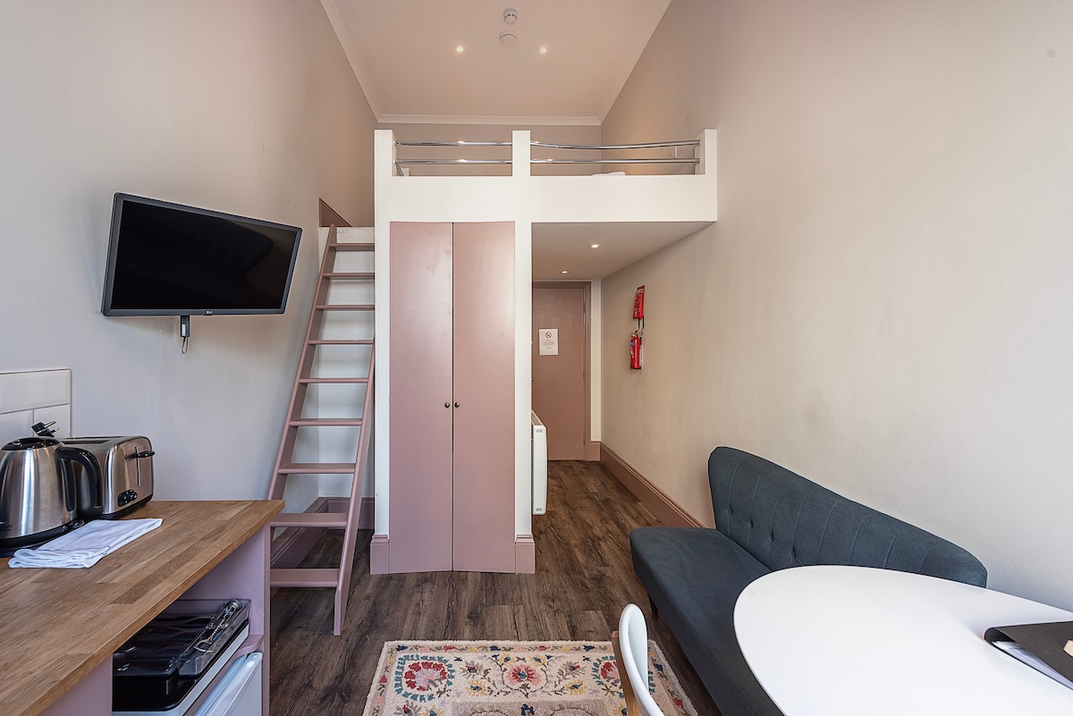 En designägd mews-lägenhet på en charmig kullerstensgata nära staden och havet. Vakna upp i våra konstiga mews och känn att du befinner dig i en filminspelningsplats. Har ett underbart boho öppet område, ett stort sovrum, ett duschrum och en bäddsoffa för två extra gäster i huvudrummet. Förvänta dig en madrass av god kvalitet, bomullsark, vintage textilier, läcker inredning — och en bekväm och unik upplevelse. Plus en bäddsoffa i vardagsrummet för extra gäster. Gratis parkering finns på gatan.