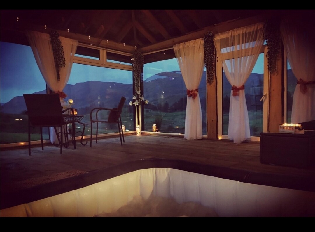 Luxe Glamping Pod med privat bubbelpool och sjöutsikt