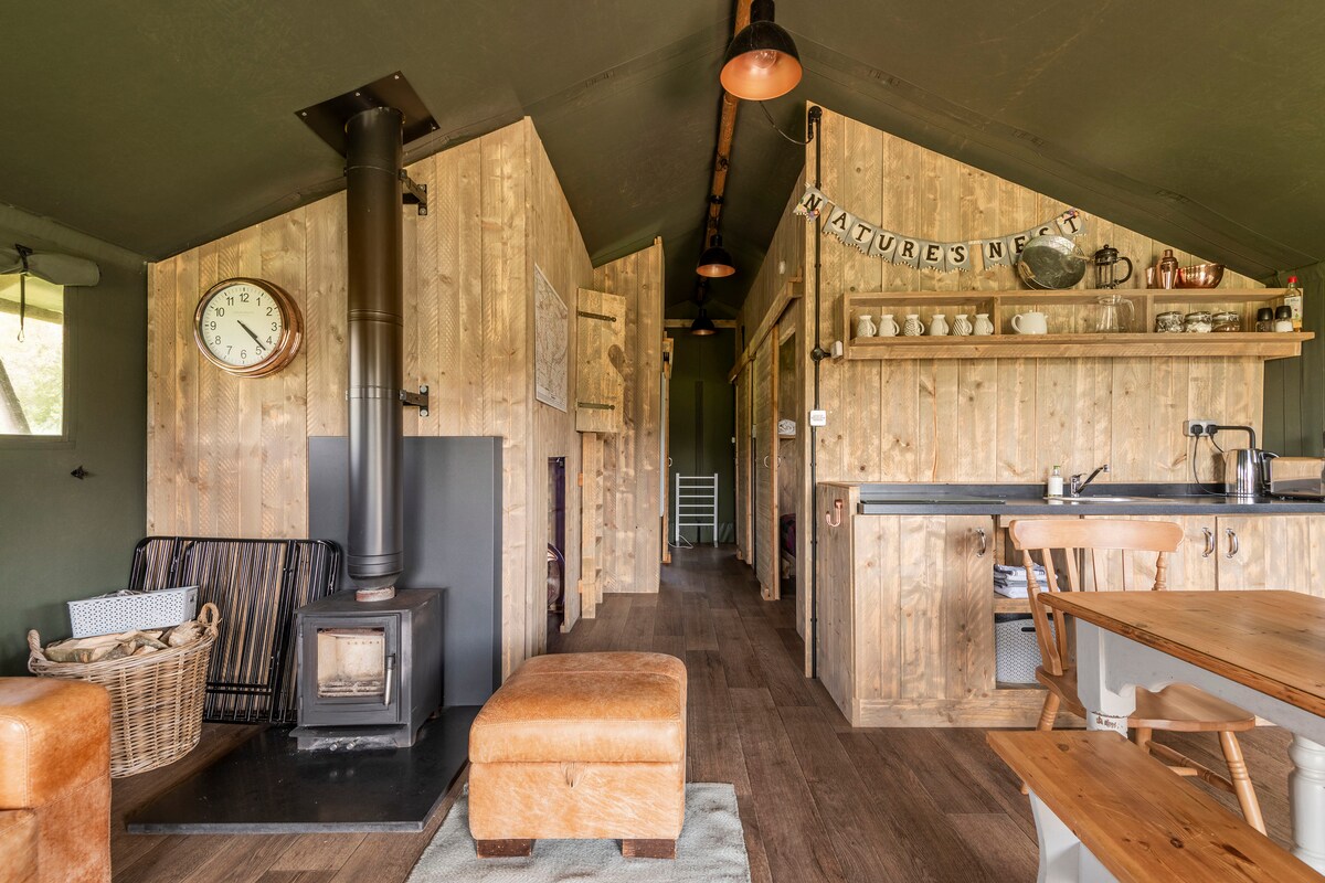 Lyxig canvasstuga med badtunna @ Nature's Nest