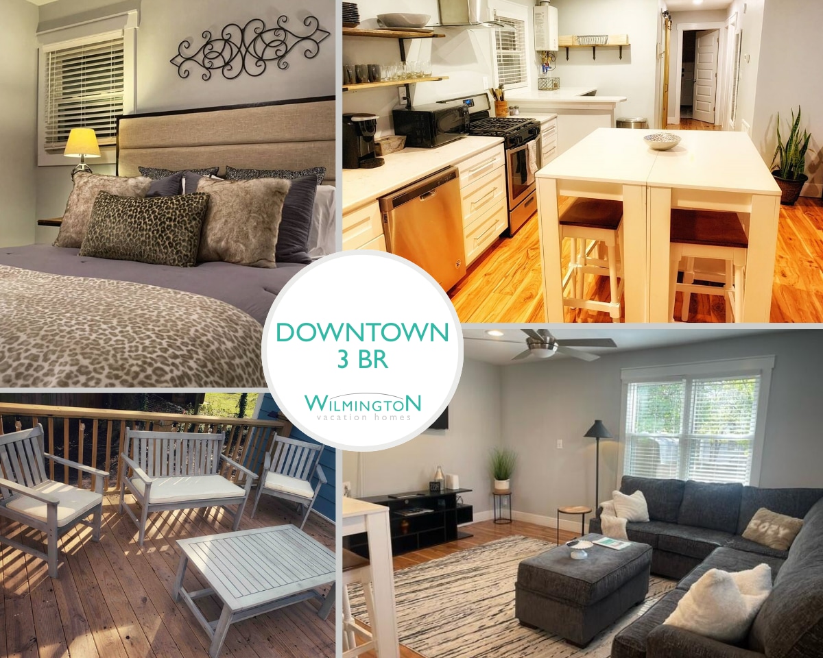 Nedervåningen i ett tvåvåningshus, med egen ingång. 1 kvarter från det livliga Castle Street District i centrum. Njut av förstklassiga restauranger, drick kaffe på mysiga kaféer, utforska trendiga klädbutiker och vintagebutiker, koppla av med vin, se en film på den närliggande biografen, skäm bort dig själv på en salong/spa, hitta din zen i en yogastudio och njut av levande musik. Minuter från Live Oak Pavilion, GFL Amphitheater och bara 15 minuter från de soldränkta stränderna i Wrightsville Beach.