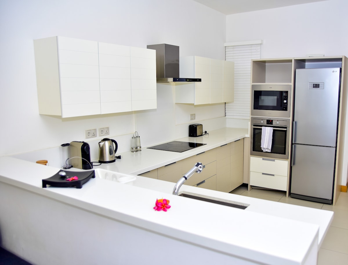 Cap Ouest Beachfront Apartment är idealiskt beläget längs kustvägen Flic en Flac, omgiven av en mängd restauranger och barer inom gångavstånd från komplexet. Lägenheten med 3 sovrum ligger på bottenvåningen och erbjuder spektakulär utsikt över infinity-poolen och det blå havet.Lägenheten består av modern inredning, tre sovrum med eget badrum, ett fullt utrustat modernt kök, ett vardagsrum / matsal.