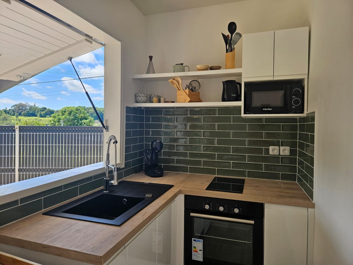 Mahogany lodge ligger i ett familjeområde på landet, i korsningen mellan 3 kommuner på södra delen av ön: Rivière-Pilote, Saint-Esprit och Rivière-Salée. Utrustad med en mezzanin, blandar den enkelhet och elegans och säkerställer upp till 4 bäddar. Ditt värdpar är medbrottslingar i ditt välbefinnande och ger dig ett varmt välkomnande. Kom och väck alla dina sinnen med naturen nära till hands, stranden Anse Figuier 15 minuter bort, destilleriet La Mauny 8 minuter bort och andra aktiviteter att uppleva!