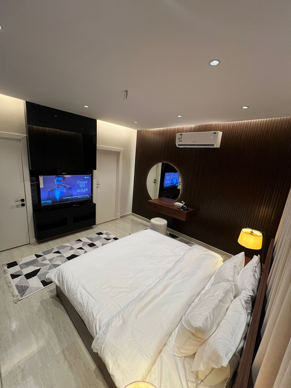 • 📺 Ett lyxigt underhållningsprogram som inkluderar alla sport- och internationella kanaler • 🎬 En plattform för högkvalitativa filmer och serier • 🌐 Höghastighets-WIFI • 📺 75-tums smart skärm för en filmisk upplevelse • 🛏️ Lyxigt sovrum med elegant design • 🛌 Extrasäng på begäran mot en avgift • 🌿 Privat utomhussession i lugn och ro • ✨ Modern inredning med eleganta hotellinslag • 🍽️ Restaurang finns i samma byggnad • ☕ Mycket trevliga kaféer nära platsen • 📍 Ett distinkt och lättillgängligt strategiskt läge • 🕊️ Fullständig avskildhet och lugn