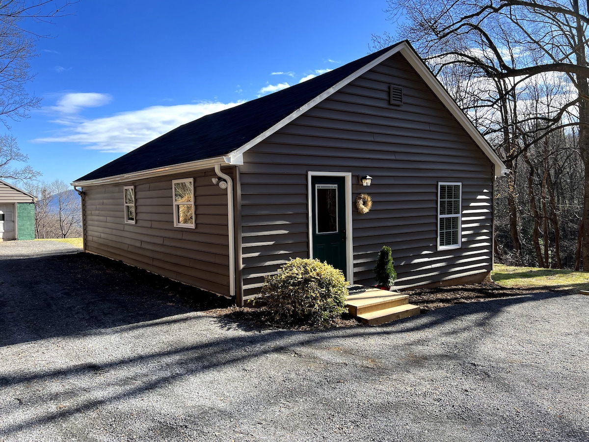 LÄS ALL information om detta boende. Shepherdess Cottage" är ett härligt ställe att besöka. Den har utsikt över Cahas Mountain i Franklin County, Virginia. Denna stuga har 2 sovrum och ett badrum. Ett stort kök öppet till ett stort rum. Totalt utrymme är 800 kvadratfot. (Inkluderar inte stora verandor) Detta boende ligger i en lantlig miljö. Det finns andra hus runt som kan ses. Vägen kan vara trafikerad vissa tider på dygnet. Huset brukade vara ett skolhus med ett rum i början av 1900-talet.