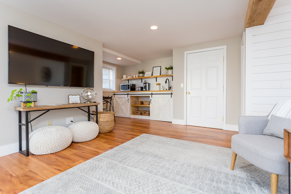 Gå ut genom ytterdörren till detta unika boende och du är några steg från allt som centrum i Harrisonburg har att erbjuda: många restauranger, bryggerier, butiker, marknader, utomhusaktiviteter och JMU:s campus! Carriage House från slutet av 1800-talet har renoverats helt – luta dig tillbaka och koppla av med en helt ny 65-tums smart-TV eller bege dig ut för en utekväll! *Denna enhet är djurvänlig, men du MÅSTE ha din lurviga vän listad på din bokning*