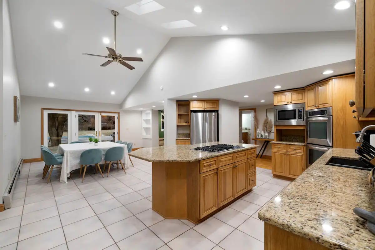 *POOL IS OPEN* Enjoy warm weather at this peaceful mountain retreat just an hour from NYC. Lounge on the patio with a BBQ, fire pit, or spacious backyard with stunning views, or cool off in the pool. Inside, bright living spaces filled with natural light, a full gourmet kitchen, and cozy bedrooms with sparkling clean bathrooms make it perfect for families or groups. Explore nearby trails, relax outdoors, or unwind with games and movies indoors. Great for the whole group!