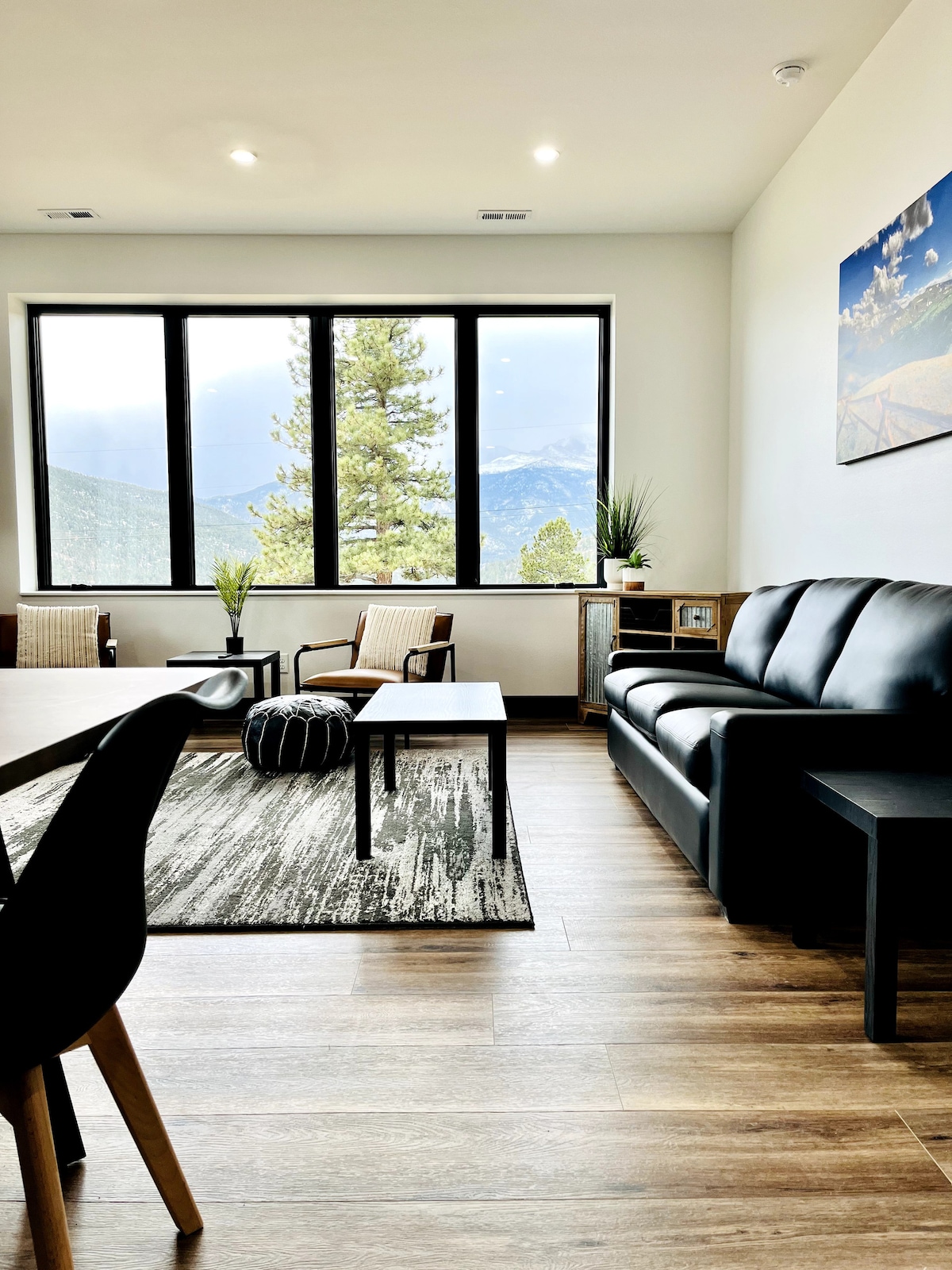 En perfekt tillflyktsort för par nära centrala Estes Park, Permit 4014. Njut av en espressomaskin, luftkonditionering, en elbilsladdare och en ljus vägg av fönster. "Detta är det bästa stället vi någonsin bott på. Superrent, så sött, kraftfull A/C, lugn gata, trevlig enkel promenad till centrum." – Kelley Gångavstånd till Lake Estes, bryggerier, tacos och staden. - Smart-TV, elbilsladdare - Sovrum och bäddsoffa - Uppvärmda badrumsgolv - Kök med kokplatta och vitvaror Perfekt för upp till 4 gäster.