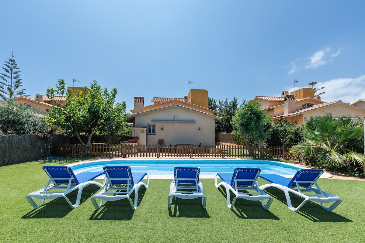 Hus med pool och grill 5 min till stranden