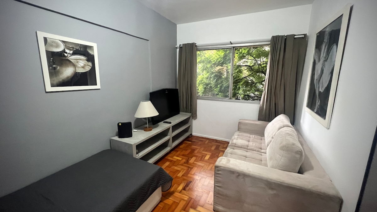 Nyrenoverad lägenhet i hjärtat av Jardins och perfekt för att tillbringa lugna och bekväma dagar. Det är 37 m² uppdelat i sovrum, kök, badrum och vardagsrum. Med enkel tillgång till andra regioner, busshållplatser, köpcentra och 1 km (12/15 minuters promenad) från tunnelbanestationen Trianon och Av. Paulista. Det finns ett gym, en pool och parkering.