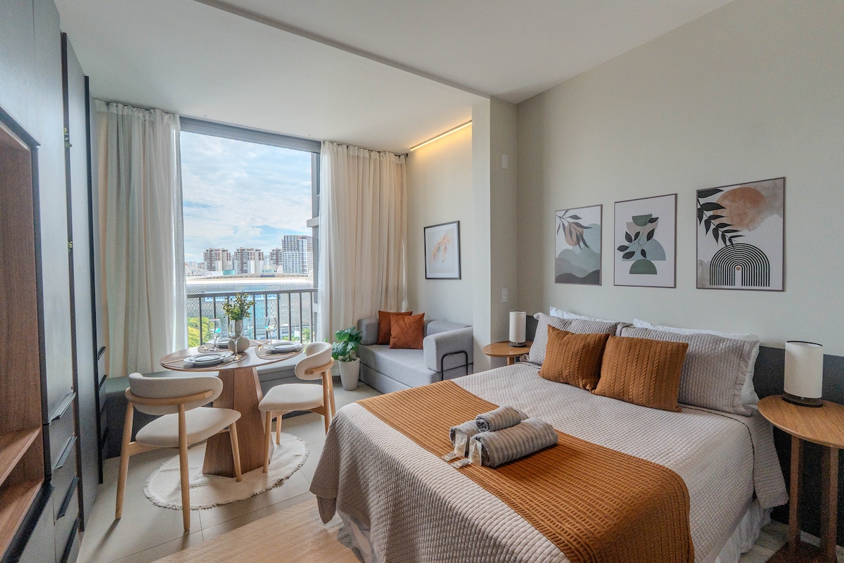 Studio med utsikt över Allianz Parque/garage/pool