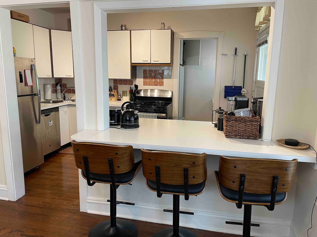 3 miles till Northwestern och 2,5 till Loyola Universities. Njut av lokal shopping, underhållning och restauranger i Evanston. Promenera, cykla eller köra till Lake Michigans vackra stränder. CTA till Chicago i närheten. Två sovrum med king-sängar och ett tredje sovrum med en full. LR har skivspelare, skivor, Netflix, Max, Disney+, Hulu... Njut av ett pingisbord och pussel. Arbetsyta i två sovrum. Köket har spis, ugn, mikro, kaffebryggare och brödrost. Gratis parkering utanför gatan.