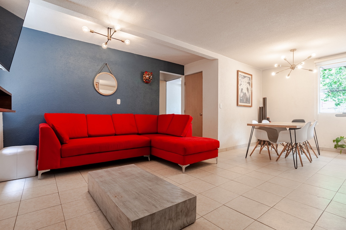 Om du gillar att cykla kommer du att vara på rätt plats!!!! Lägenhet mitt i Roma Norte, perfekt för resenärer, par, affärsresor. Nära restauranger, kaféer, gallerier, barer, etc. 15 minuter från La Condesa och mycket nära Reforma, Chapultepec och Polanco. "Bekväm" fullt utrustad, säkerhet dygnet runt.