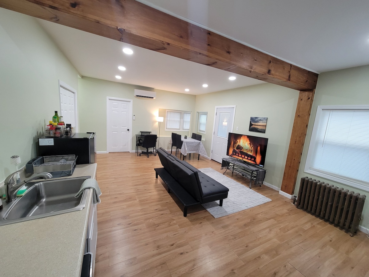 Ljust, modernt, nyrenoverat och anlagt utrymme rymmer upp till 6! Otaliga bekvämligheter inklusive ett kök med diskmaskin, kylskåp i full storlek. 3 sovrum, 2 fulla badrum och gemensamt vardagsrum. Perfekt för båtfarare eller för att delta i evenemang i Port Jefferson, Stony Brook eller var som helst på Long Island. Vi är en 1 minuters bilresa eller 10 minuters promenad från Port Jefferson Harbor och Ferry Dock. Centralt beläget på LI för enkel tillgång till LI järnvägsväg och busslinjer.