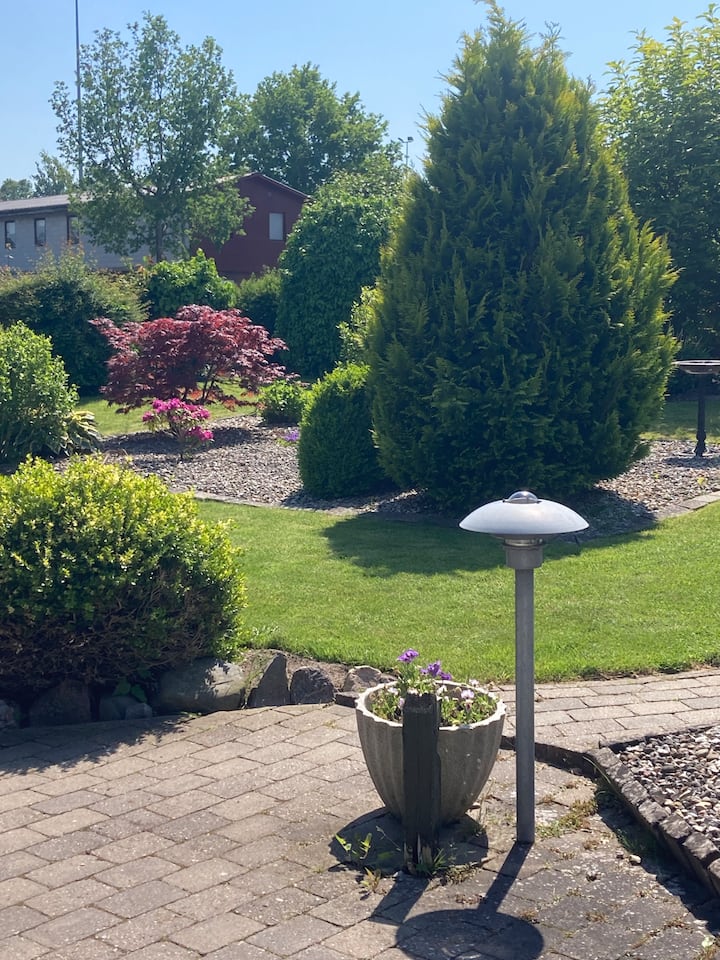 Hus med sluten trädgård i lugnt område