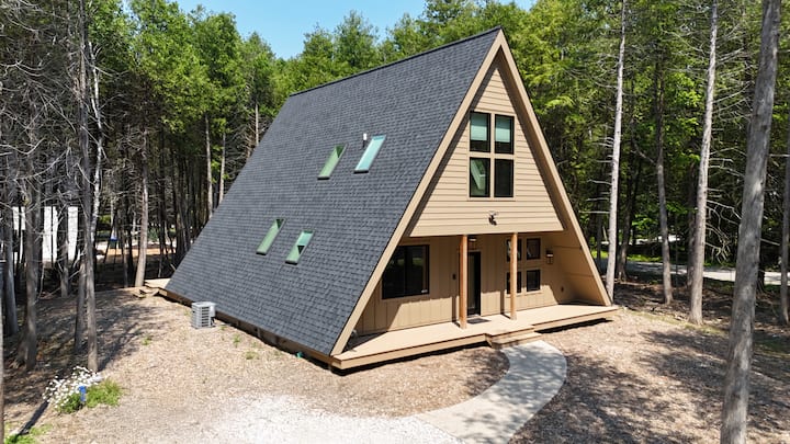 Lyxig A-Frame med tillgång till sjö, bra för familjer
