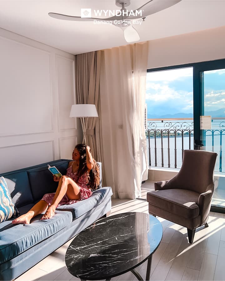 Wyndham Danang Golden Bay – 5-stjärnigt hotell med lyx- och lyxresortstjänster. Med ett underbart läge där Han-floden töms i det gröna östhavet, är Wyndham Danang Golden Bay en korsning mellan berg, himmel och hav, det perfekta utgångspunkten för resan för att upptäcka den dynamiska staden Da Nang, den charmiga skönheten i Dananghavet, den gröna Son Tra Peninsula och upptäcka den centrala arvsresan från den antika huvudstaden Hue, den poetiska Hoi An eller den mystiska My Son Sanctuary.