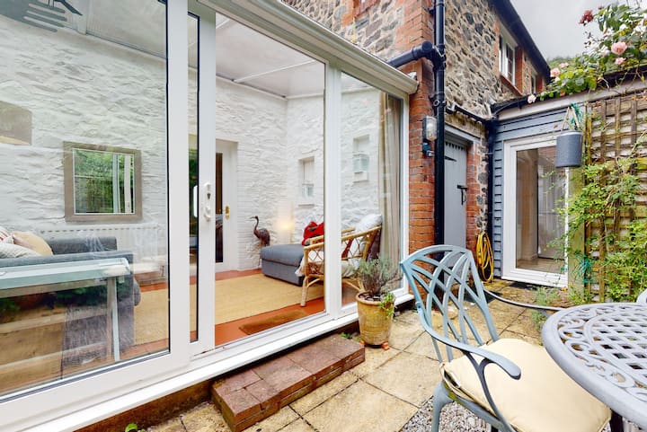 Mittemot stugan (över den lilla vÀgen och vid parkeringsplatserna) finns en liten uteplats med bord och stolar under trÀdet, eller för mer avskildhet finns en grind och trappsteg som leder ner till ett privat trÀdgÄrdsomrÄde bredvid Hawkcombe bÀck. Ta en bok och njut av att lyssna pÄ strömmen som rinner förbi!