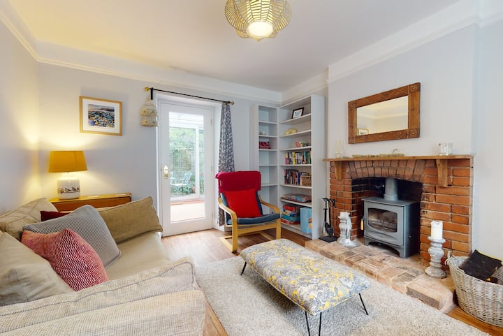 Tillbaka vid ytterdörren tar svÀng höger dig till loungen med andra vedspis, TV, bokhyllor (fyllda med böcker och spel), soffa och sittplatser. TV: n har en FireTV-pinne installerad, vilket innebÀr att du enkelt kan komma Ät streamingtjÀnster som Netflix, BBC iplayer, Amazon Prime-konton. En dörr frÄn loungen tar dig in i vintertrÀdgÄrden - ett hÀrligt utrymme att sitta under dagen, en liten soffa, stolar och matta och sedan skjutbara glasdörrar leder dig till uteplatsen pÄ baksidan av fastigheten. Uteplatsen Àr asfalterad och avskild. Det finns en grind till passage lÀngs sidan av fastigheten till framsidan och denna tillgÄng till uteplatsen och dÀrifrÄn till tvÀttstugan gör det enkelt att ÄtervÀnda frÄn en lÄng promenad.