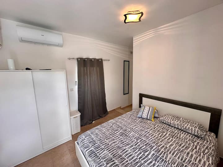 Huset ligger några minuters promenad från busshållplatser, stormarknader, stränder