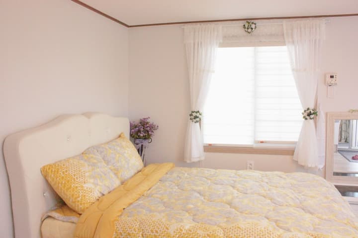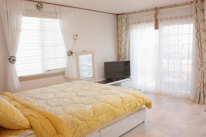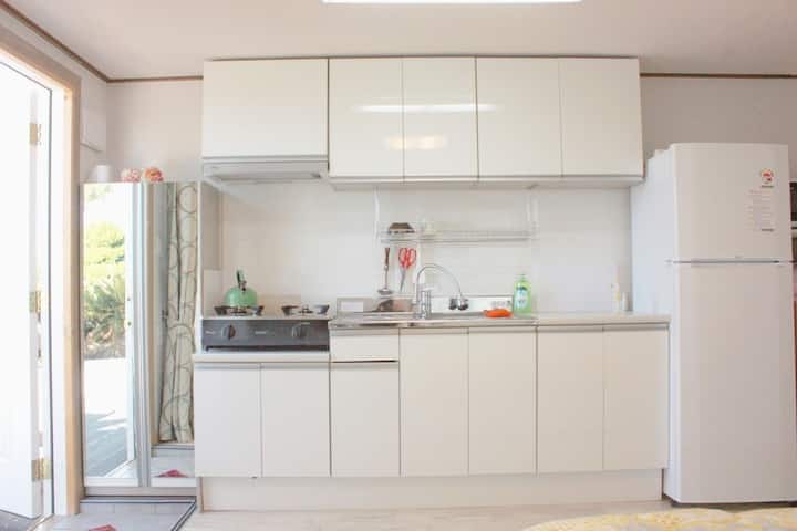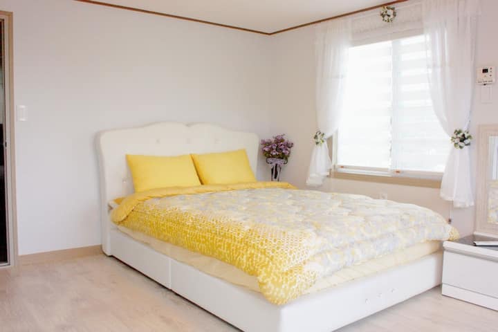 Vi vill varmt välkomna dig i denna juvel i Jeju, där du kan glömma vardagslivets liv och rörelse genom grillfester och avkopplande tetid på terrassen. Jeju Gospel Pension ger alla besökare ett utrymme för att lindra tröttheten i kroppen och sinnet med charmen av ren natur. Vi tillhandahåller komfort utöver värmen från vår familj, och vi kommer alltid att stå till ditt förfogande för att hjälpa dig att bygga minnesvärda minnen.