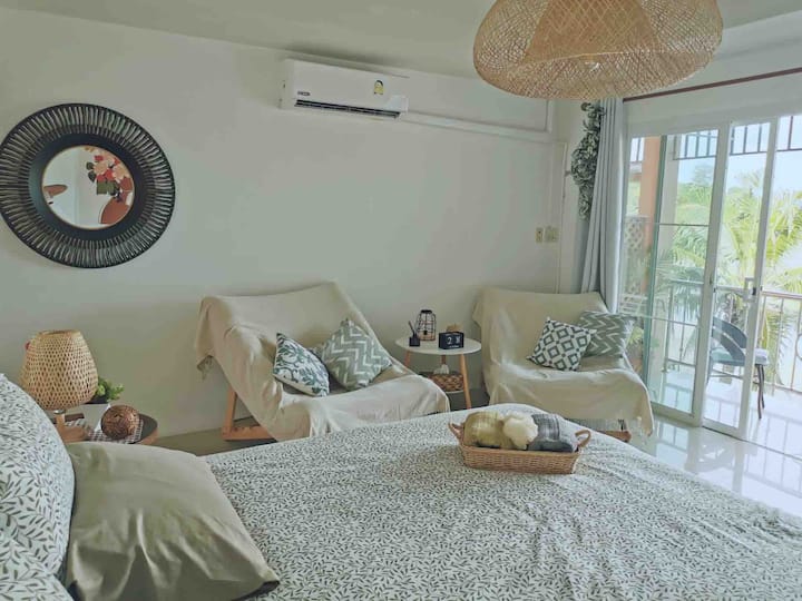 Härlig lägenhet vid stranden med balkong