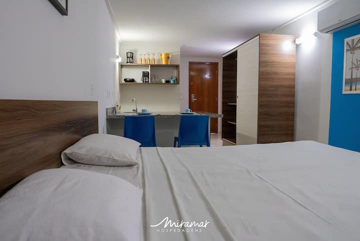 Vacker lägenhet i Blue Sunset ligger på Cabo Branco strand i ett lugnt och lugnt område i staden João Pessoa.