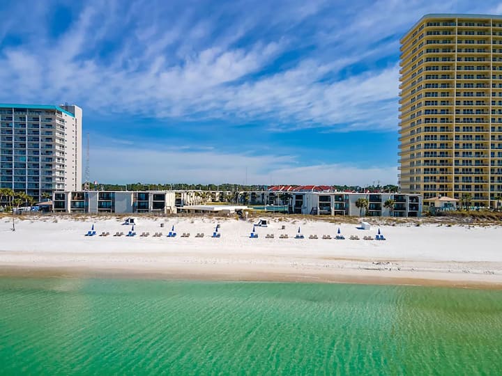 Sugar Beach ligger på den sockervita sanden i Panama City Beach nära den fridfulla, östra änden av Thomas Drive. Komplexet har bekvämligheter och erbjuder en pool vid bukten, upplysta tennisbanor, shuffleboard, grillplatser och ett klubbhus! Observera att det inte finns någon hiss på denna fastighet. Du kommer att vara omgiven av lokala matställen, inklusive en kort promenad till Hammerhead Fred's eller Longboards. I närheten ligger Wonderworks och Shipwreck Island Waterpark.
