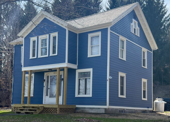 Vi är tidigare lokalinvånare i norra New York som växte upp med en timmes mellanrum. Vi träffades hela vägen över hela landet i Kalifornien och gifte oss på Jordans familjegård i Colliersville. Detta hus är vårt familjehem när vi kommer tillbaka för att besöka vänner och familj. Vi hoppas att det ger dig samma mysiga komfort som det ger vår familj!