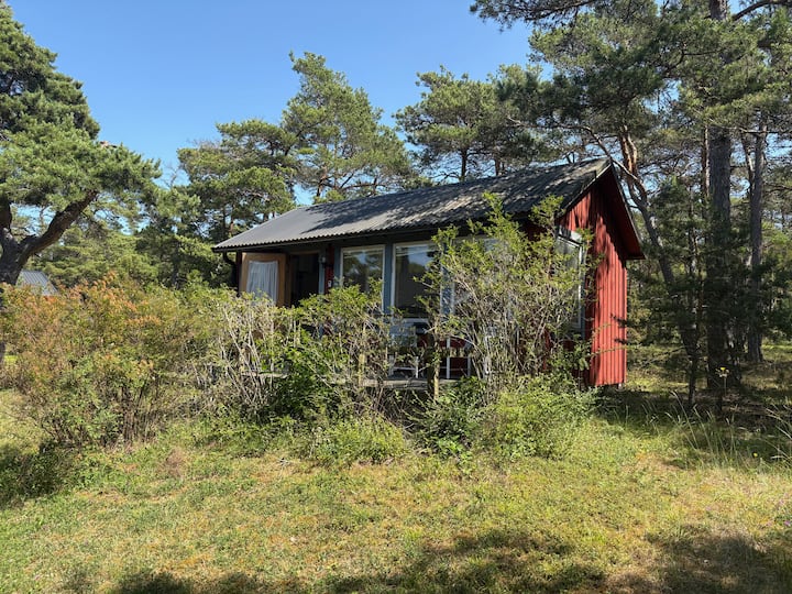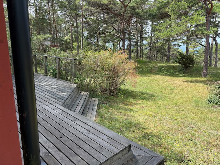 Liten stuga med havsutsikt