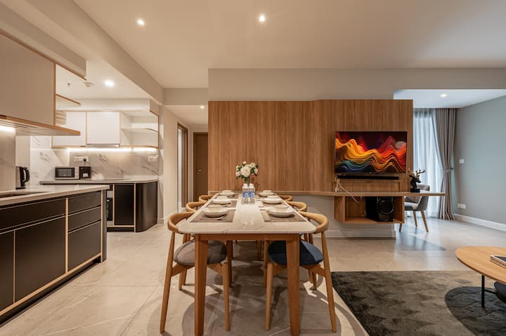 Denna vackra 128 kvm lägenhet är perfekt för familjer eller grupper av vänner som besöker Ho Chi Minh City. Det ligger i hjärtat av staden, nära alla stora attraktioner. Lägenheten är fullt inredd och utrustad med allt du behöver för en bekväm vistelse.