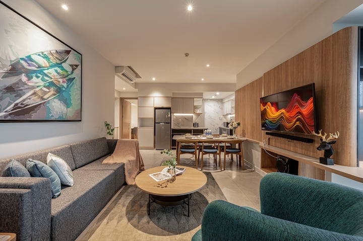 Skapa oförglömliga minnen från Saigon tillsammans på Zenity! Vår eleganta 3-rumslägenhet i centrum är det perfekta stället för din grupp av bästa vänner att njuta av sin resa. Den vackra poolen och det moderna gymmet kommer att ge fantastisk avkoppling efter spännande upptäckter. Det centrala läget gör det enkelt för hela gruppen att röra sig och uppleva Saigon till fullo.