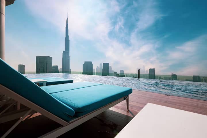 ☑ Den högsta oändliga poolen i Downtown Dubai (öppen 08:00-20:00, begränsad till 4 vuxna och 3 barn under 14 år)