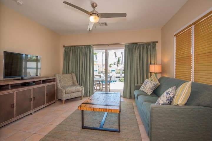I Hawks Cays tropiska villor kan du njuta av gott om vardagsrum för alla i din grupp - bara några steg från lagunen.