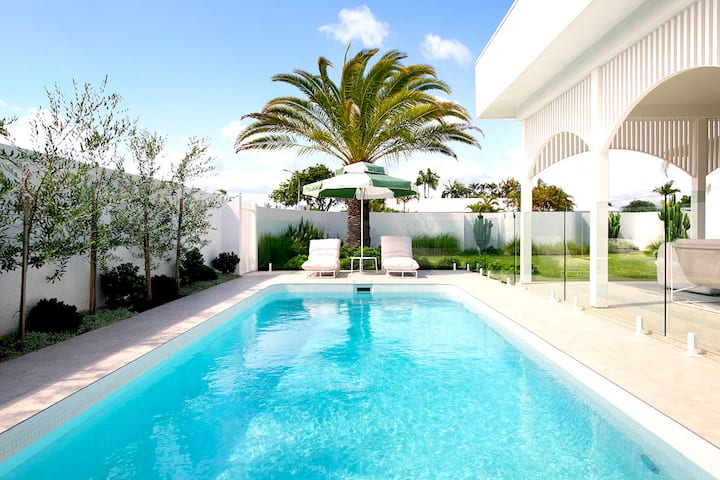 Detta är ett av få boenden i området med pool.