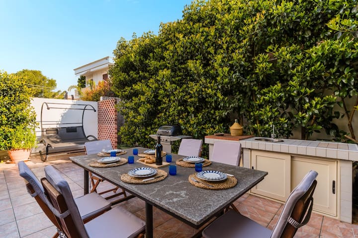 Villetta Patty, erbjuder komfort och avkoppling nedsänkt i Salento. Omgiven av en trädgård med två parkeringsplatser och en grillplats, är den perfekt för utomhusstunder. På övervåningen finns två sovrum med dubbelsäng med möjlighet till två stugor, som betjänas av ett badrum med dusch. Bottenvåningen rymmer en relaxavdelning med vardagsrum, ett stort utrustat kök, ett tvättstuga med tvättmaskin och ett andra badrum med dusch. Perfekt för en semester nära havet och naturparken Porto Selvaggio.