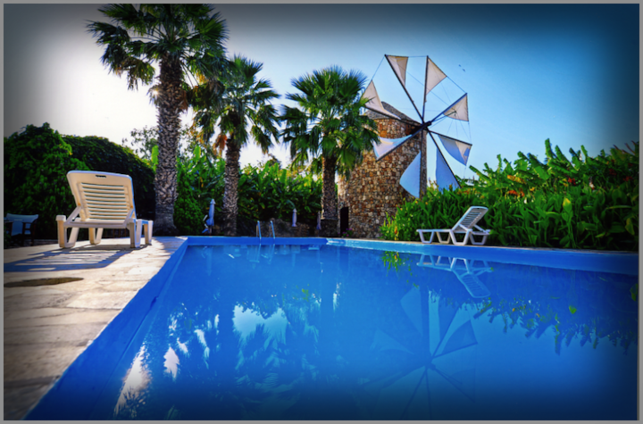 Detta är ett av få boenden i området med pool.