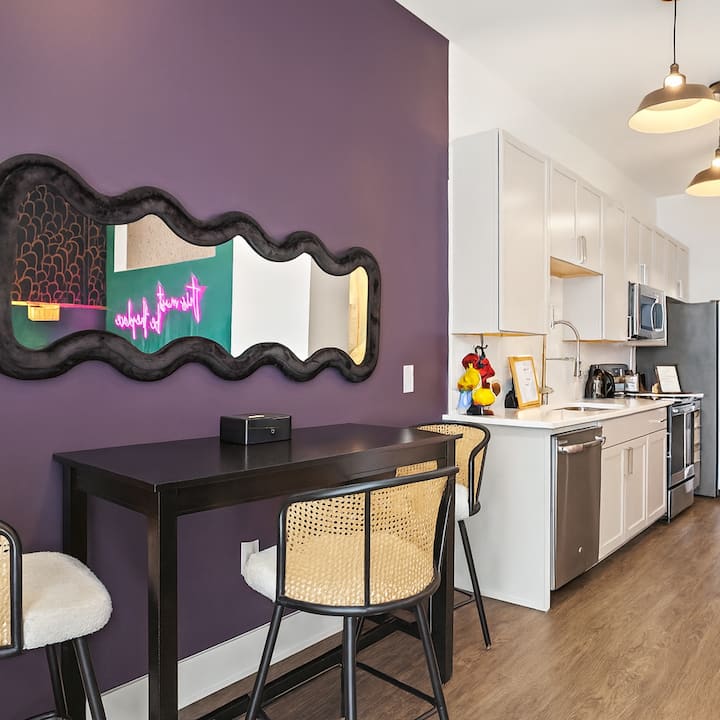 Observera att denna byggnad ligger i hjärtat av centrala Nashville. Vi är inte ansvariga för några okontrollerade variabler utanför denna byggnad, t.ex. buller, privata eller offentliga evenemang, konstruktion, etc. som kan hända utanför vid tidpunkten för din resa. Vi har ingen kontroll över stängningar av poolen. Detta är ett flerfamiljshus vars ägande kontrollerar bekvämligheterna/gemensamma utrymmen och yttre/delade utrymmen och underhåll av apparater och inre fysiska förhållanden i lägenheten (inklusive men inte begränsat till VVS, el, hvac, gips, etc.) och som sådan är dessa föremål utanför vår personliga kontroll. Vi är skyldiga att följa byggnadens rutin när det gäller underhållsproblem och tidslinjer för att lösa. Alla andra föremål som vi personligen tar hand om. Vi strävar efter att leverera en underbar vistelse och erfarenhet av allt vi kan kontrollera i själva lägenheten för att se till att du har en fantastisk tid i Nashville, som bor som en lokalinvånare!"